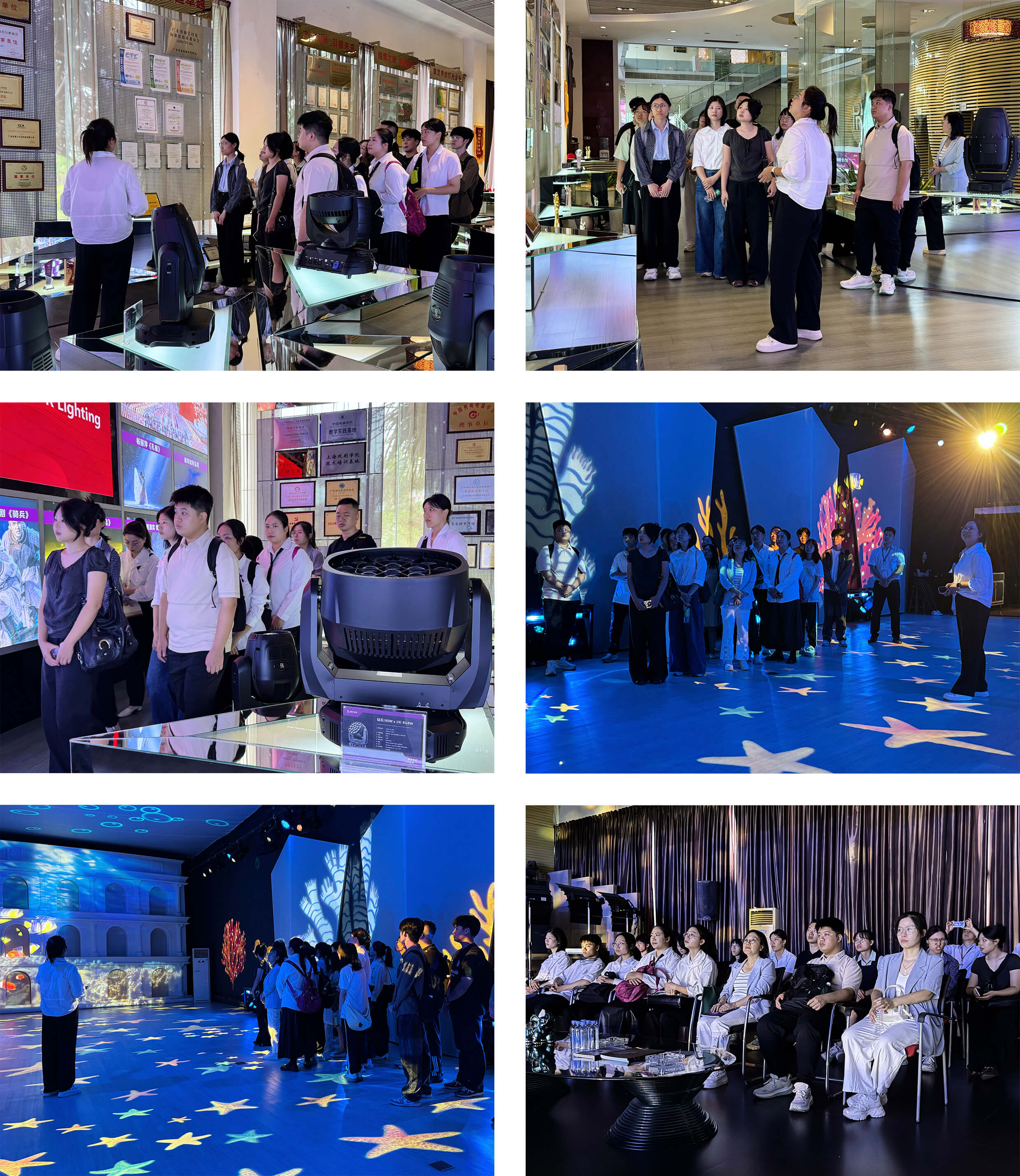 人力资源主管为学员们详细介绍了珠江灯光的发展历程,随后带领实训班学员一行参观舞台灯光演艺展厅及景观文旅体验中心。