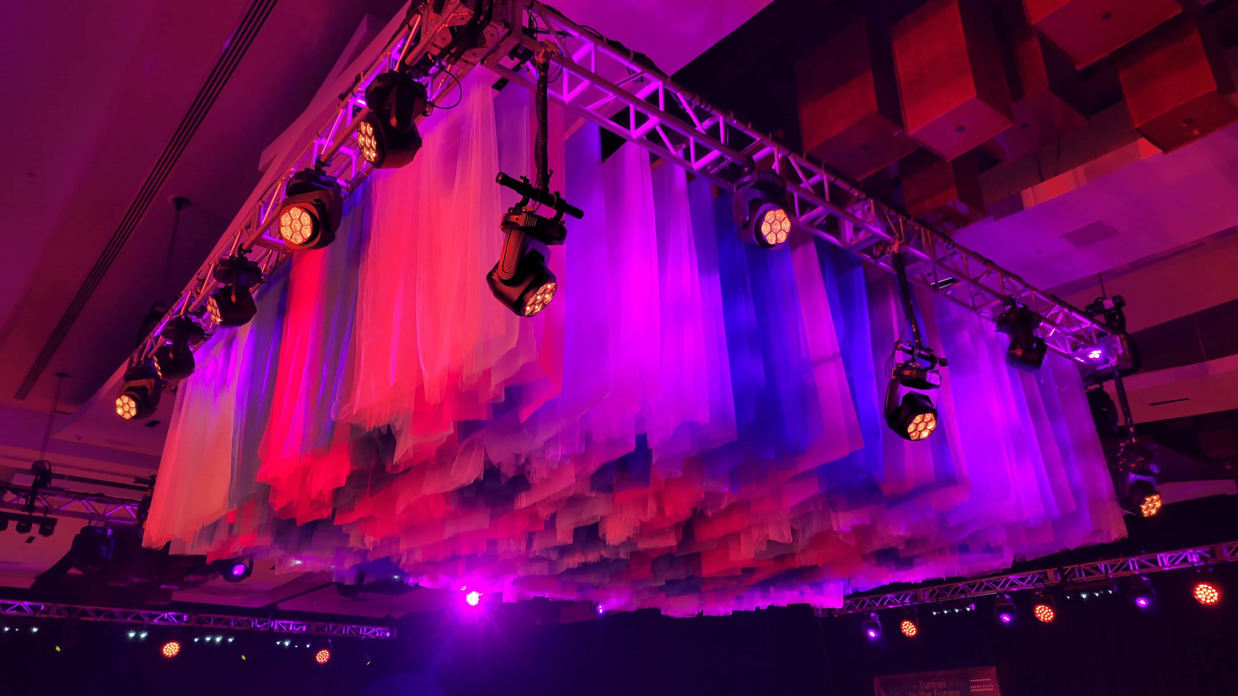 珠江灯光的光影贯穿于整场宴会中,通过钻石(60W x 7) RGBW 变焦、钻石(60W x 19)RGBW及智能580(三合一)高防水版等专业灯具,打造出丰富多样的光影效果。凭借出色光效表现、穿透力强劲,混色出彩,染色均匀等卓越性能,完美营造出温馨而热情的现场氛围。